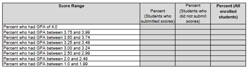 Ah, a complete lack of data. Thanks soooo much, UT. This is really helpful for students and parents and counselors. Can we ask you a question: why are you being like this? Are your admitted and accepted grades and scores not as high as you want them to be so you’re being intentionally withholding so as to seem more competitive?
